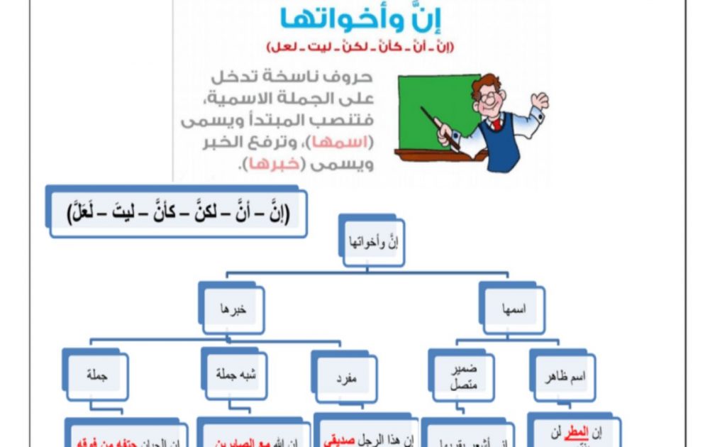 هي مجموعة من الحروف تشبه الافعال في عملها وترفع المبتدأ ويسمى اسمها، وتنصب الخبر ويسمى حبرها، وهم:-
